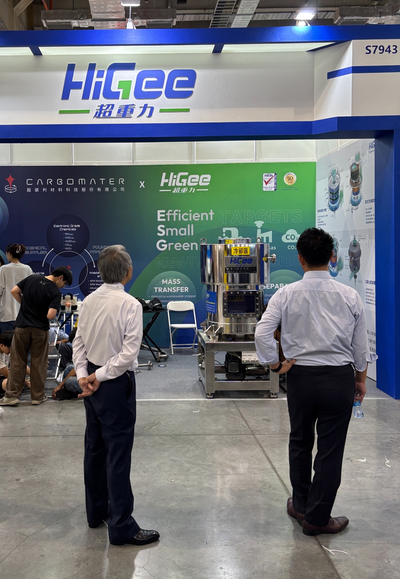 我們在此次展會中發表我們最新推出的全球首創的「多階段超重力裝置」可應用於廢水處理、廢氣處理、或碳捕捉,以及現場將展示適用於半導體業的超重力Local Scrubber實機。